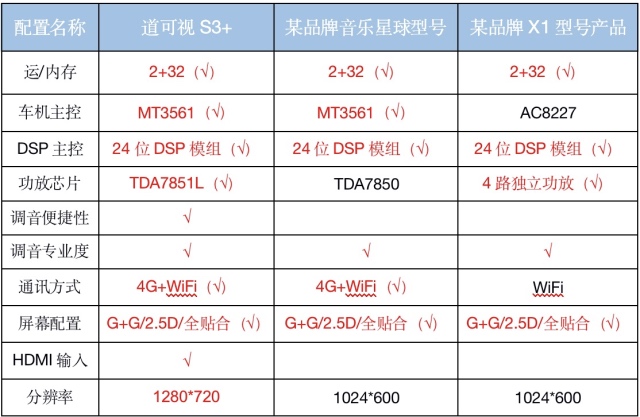 那么,道可視S3+音樂車機到底有什么料呢?空口無憑,小編直接拿它和業(yè)內(nèi)同屬高端配置的其他品牌產(chǎn)品進(jìn)行對比。